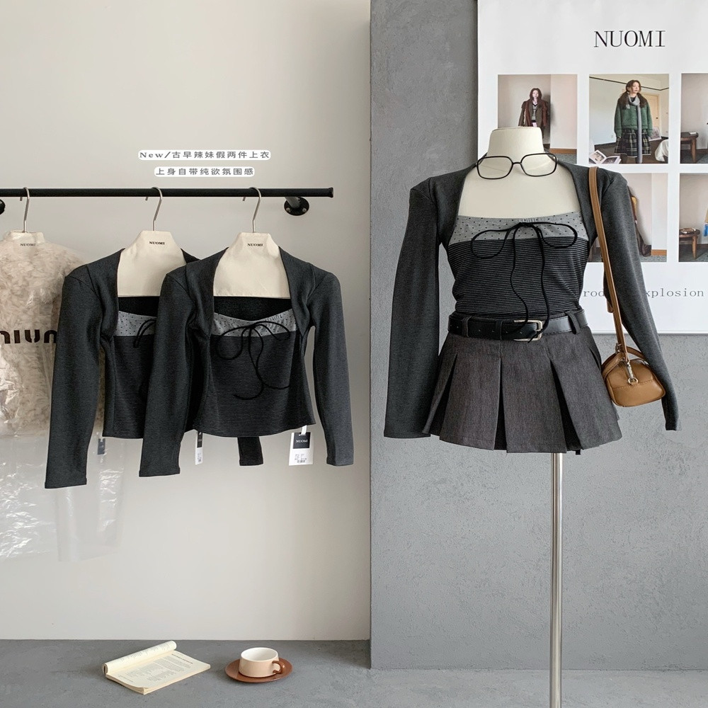 • 제품명: 유사 레이어드 슬림핏 기모 긴소매 탑