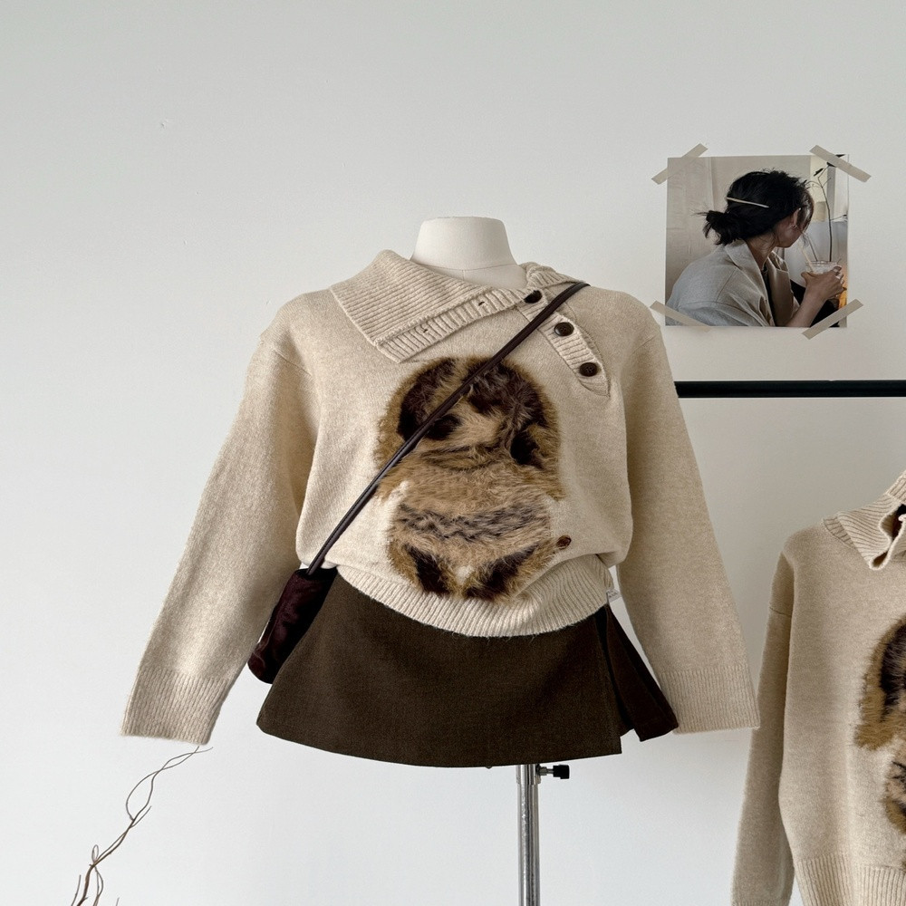 • 제품명: 카툰 퍼피 입체 패치 사선 버튼 니트