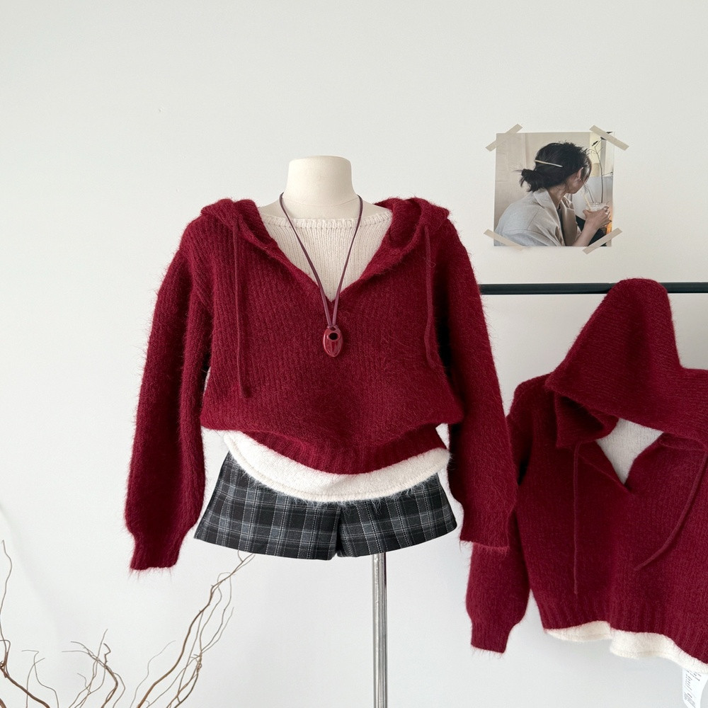 • 제품명: 레드 후드 배색 레이어드 니트