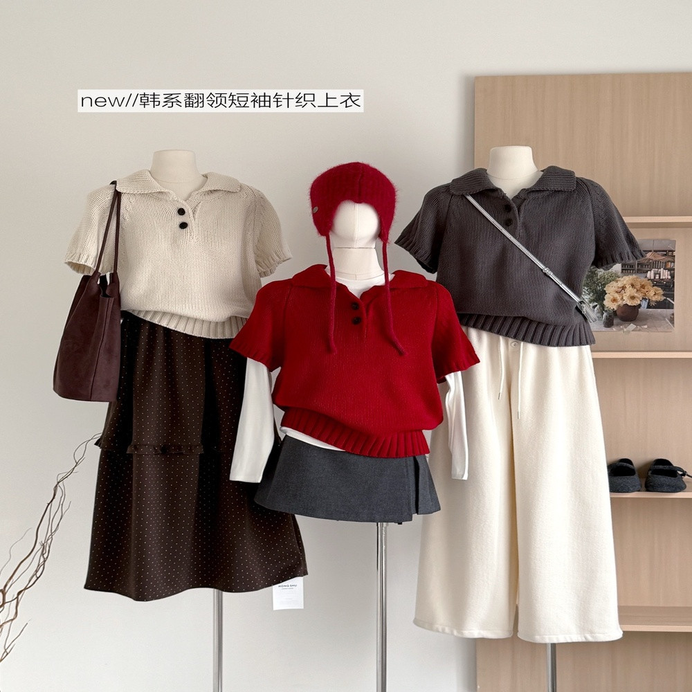 • 제품명: 카라 버튼 반소매 니트 탑