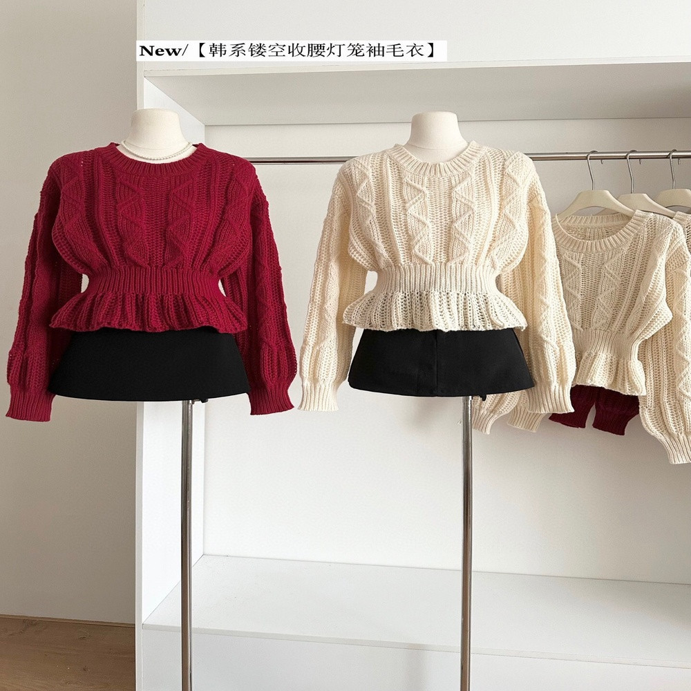 • 제품명: 레이스 펀칭 허리밴딩 벌룬소매 프릴 니트