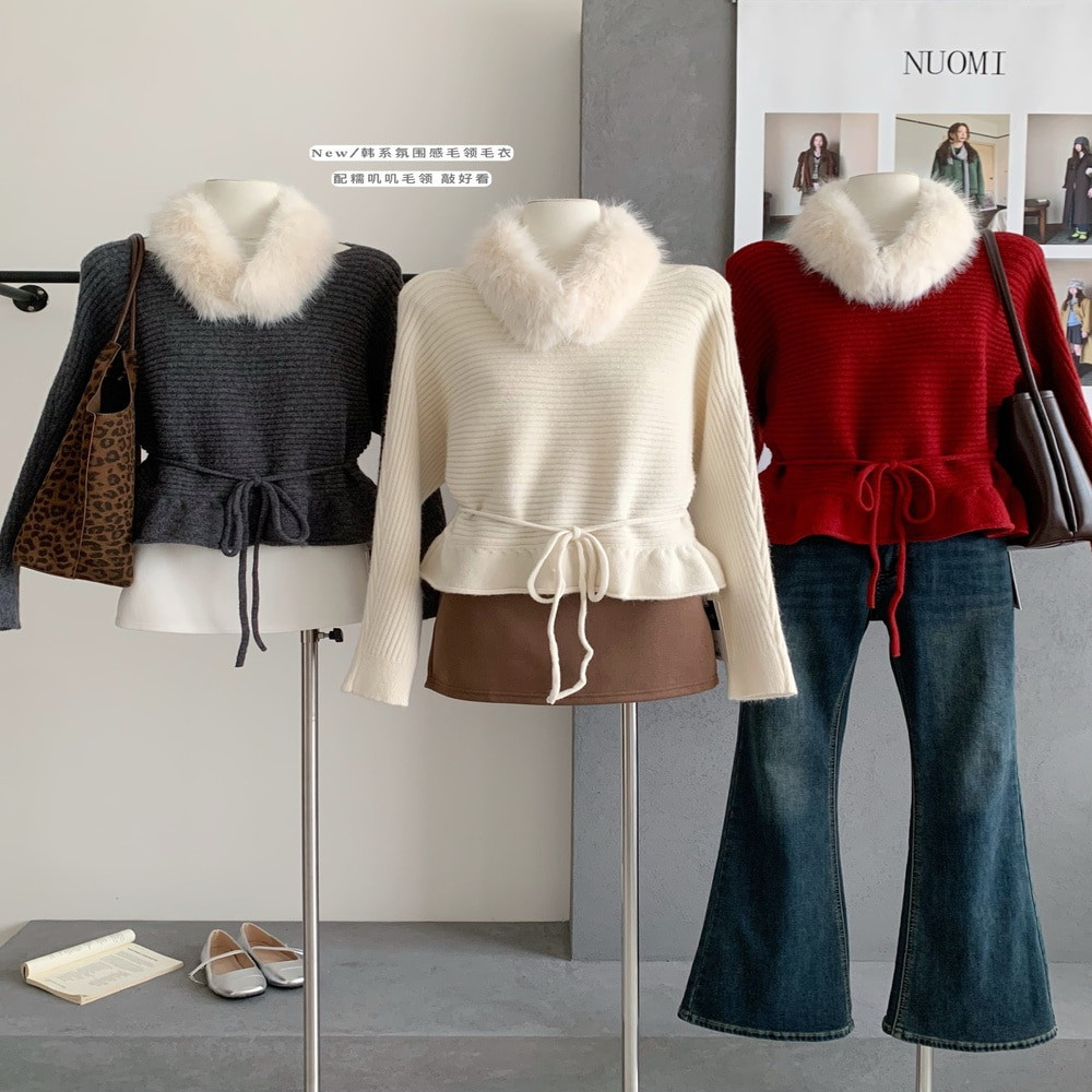 • 제품명: 탈부착 퍼카라 허리끈 골지 니트