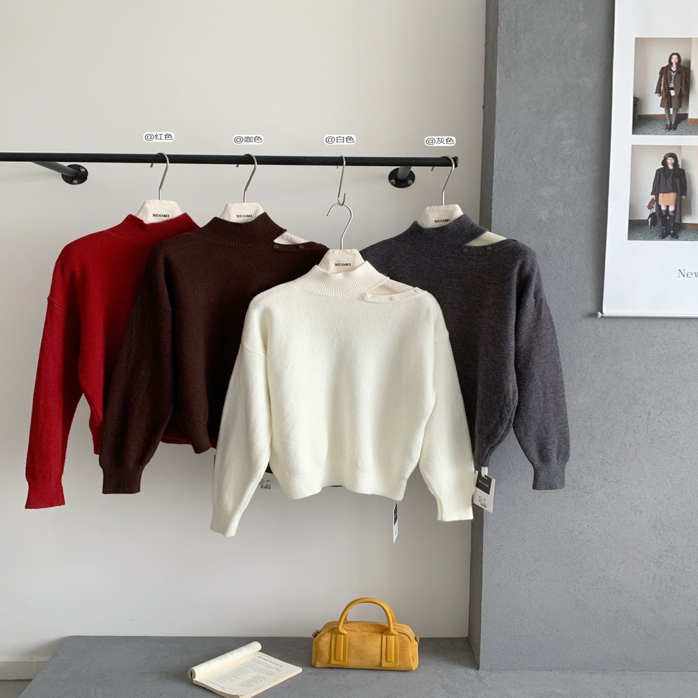 • 제품명: 하이넥 원숄더 포인트 니트
