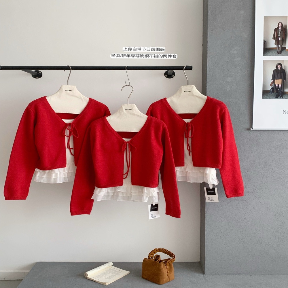 • 제품명: 레드 니트 가디건 프릴 나시 2종 세트