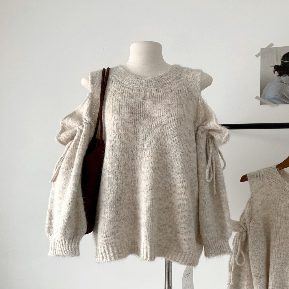 • 제품명: 오프숄더 드로스트링 루즈핏 울혼방 니트