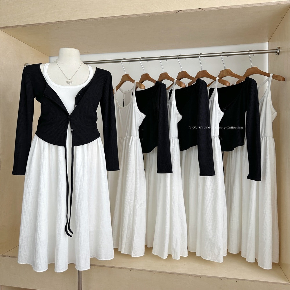 • 화이트 원피스와 블랙 가디건 레이어드 구성
