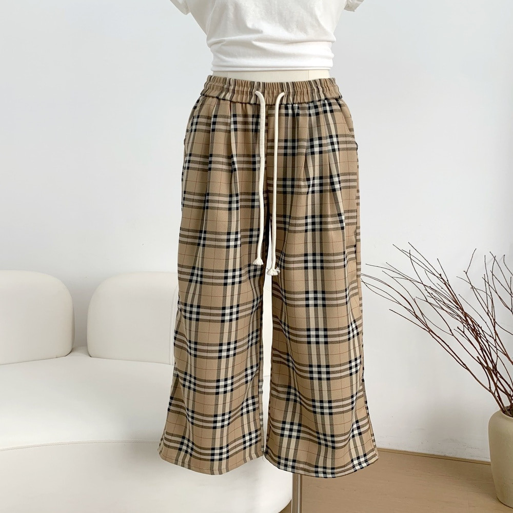 • 제품명: 체크 밴딩 스트링 하이웨스트 와이드 팬츠