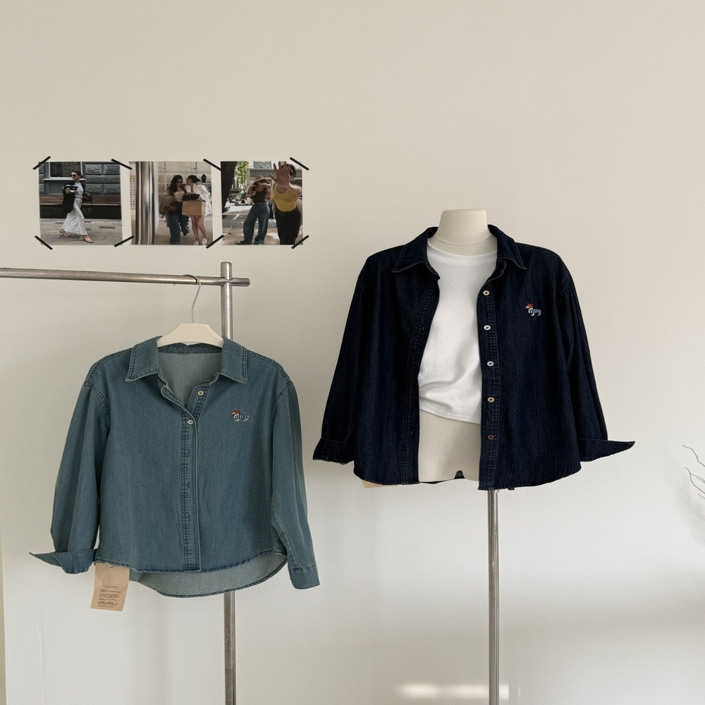• 제품명: 컬러버튼 포인트 카라 데님 재킷