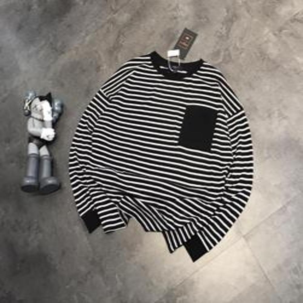 * 루즈한 드롭숄더 실루엣에 포켓 디테일 추가로 단순 스트라이프와 차별화된 디자인