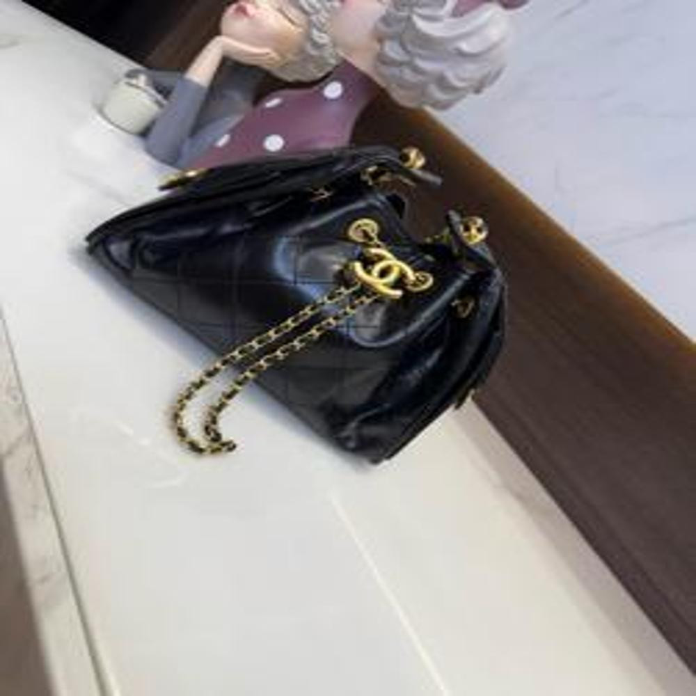 * 중앙 금속 CC 로고 장식과 스트링 디테일로 여닫이 편리