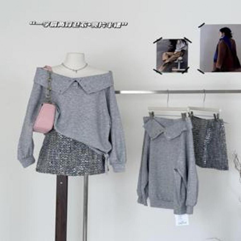 • 제품명: 오프숄더 니트 & 시퀸 미니 스커트 세트