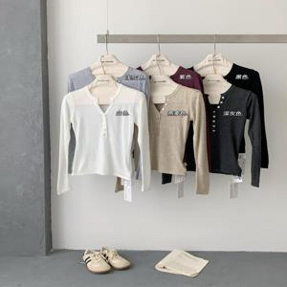 • 제품명: V넥 버튼 긴팔 이너 티셔츠