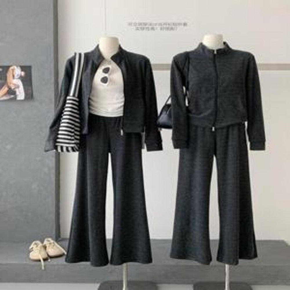 • 하이넥 집업과 와이드 팬츠 구성의 세트 아이템