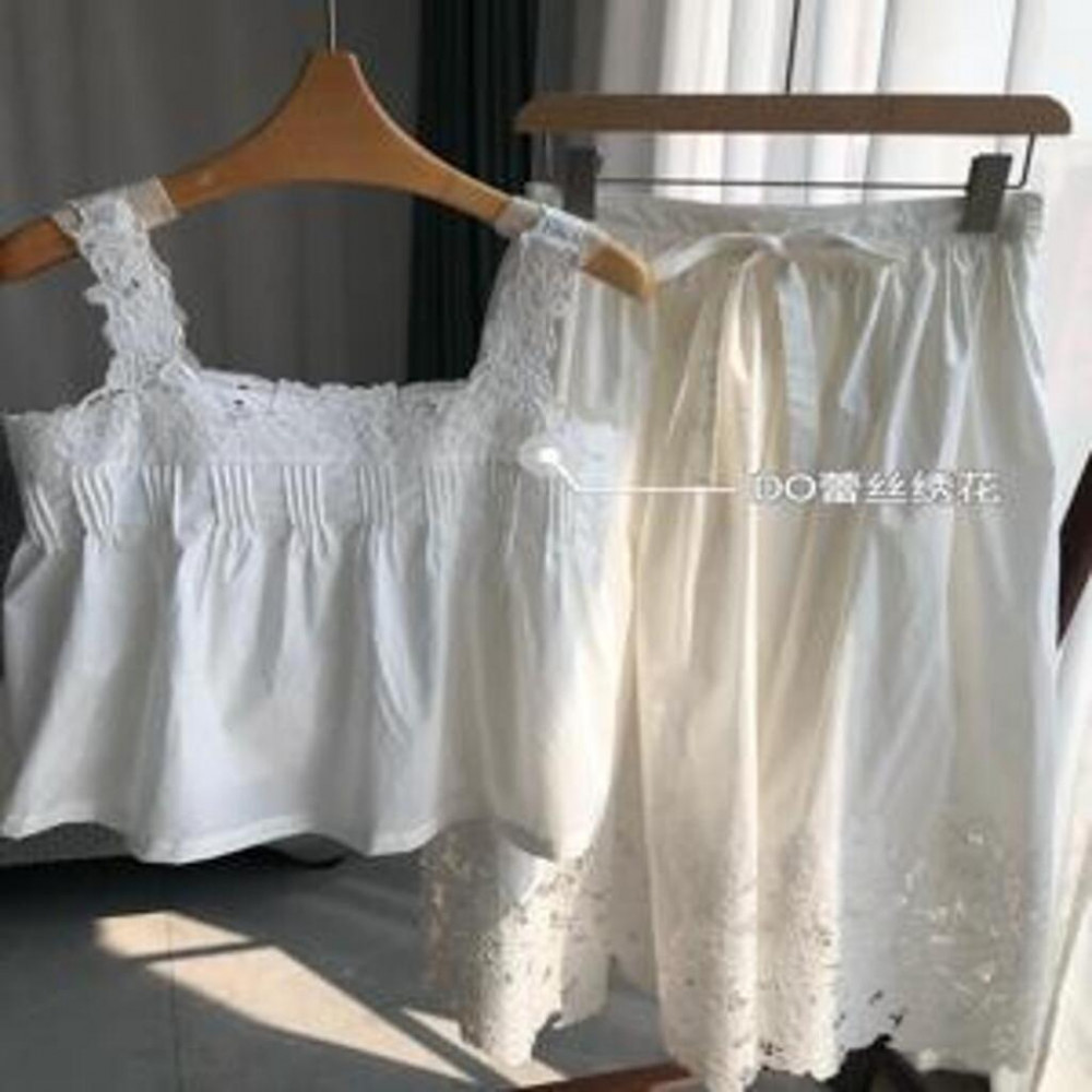 • 제품명: DO 레이스 자수 반팔 블라우스 + 반스커트 세트