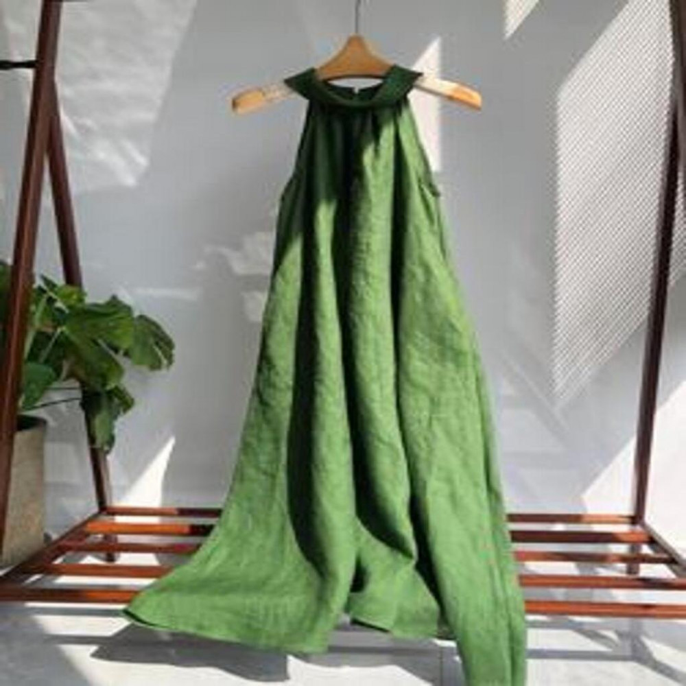 • 제품명: 포레스트 그린 홀터넥 린넨 롱 드레스