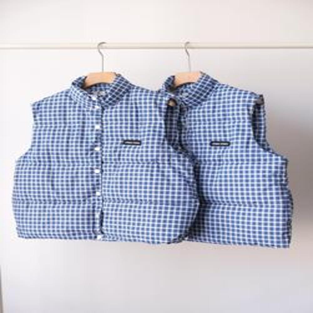 • 제품명: 2025 신상 블루 체크 하이넥 패딩 베스트