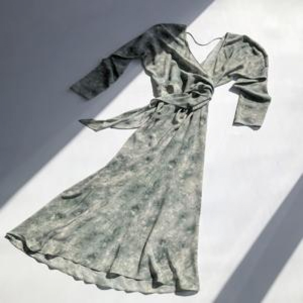 - 제품명: 청라임 기포 진주 실크 랩 원피스