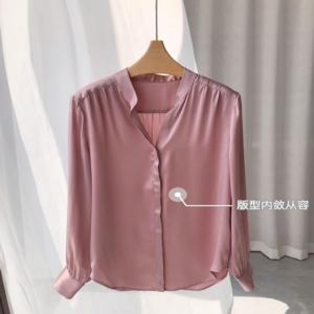 - 제품명: 로즈핑크 실크 V넥 셔츠