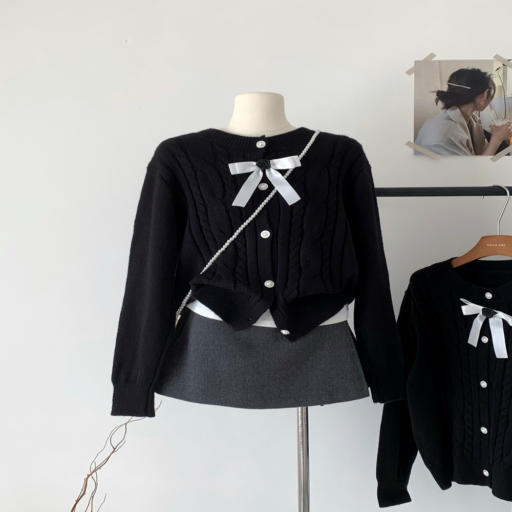 • 제품명: 리본 브로치 포인트 꽈배기 니트 가디건