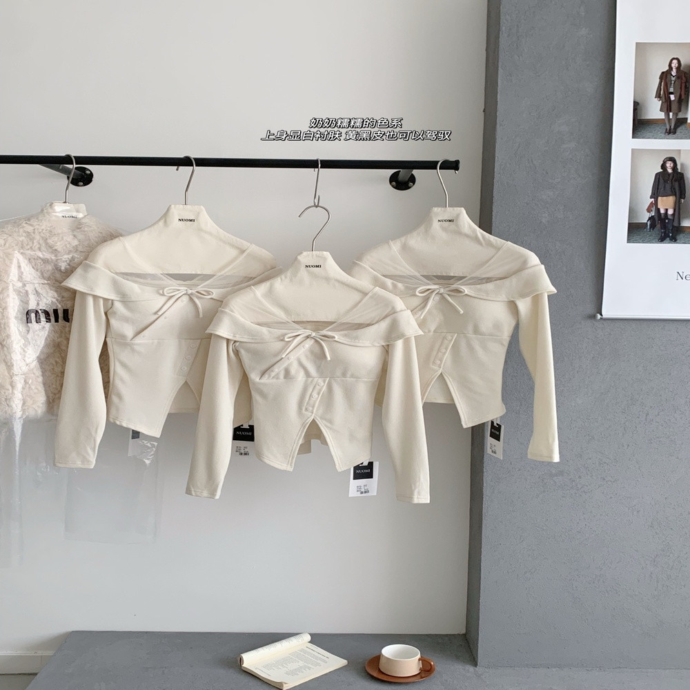 • 제품명: 오프숄더 망사 배색 리본 슬림 탑