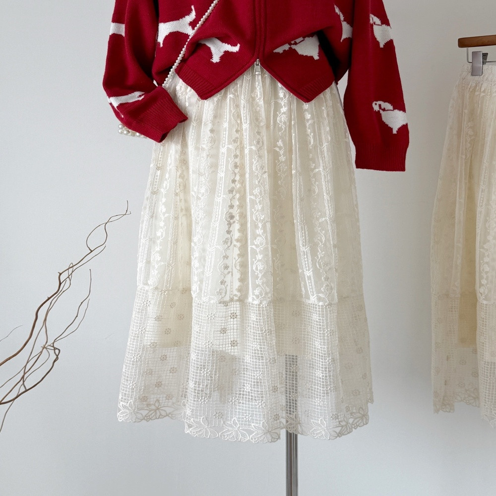 • 제품명: 레이스 패치 밴딩 롱 스커트
