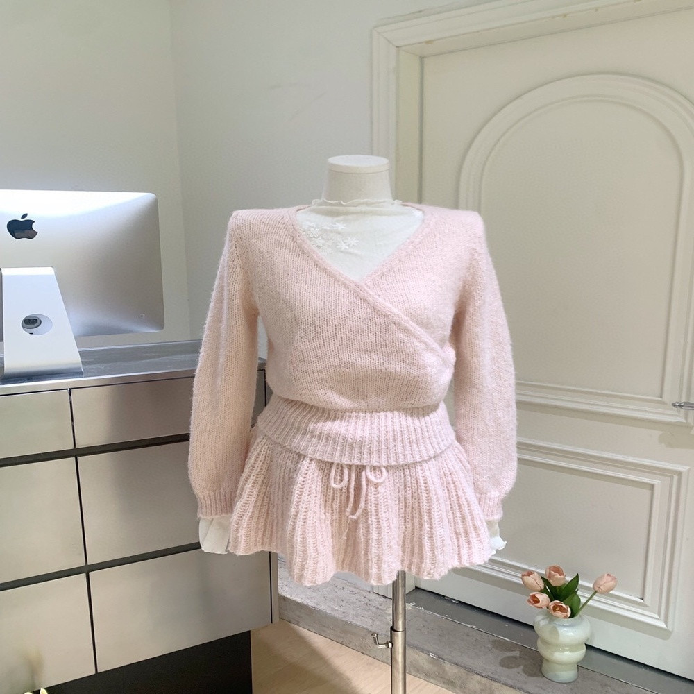 • 브이넥 랩 스타일 니트 상의 디자인