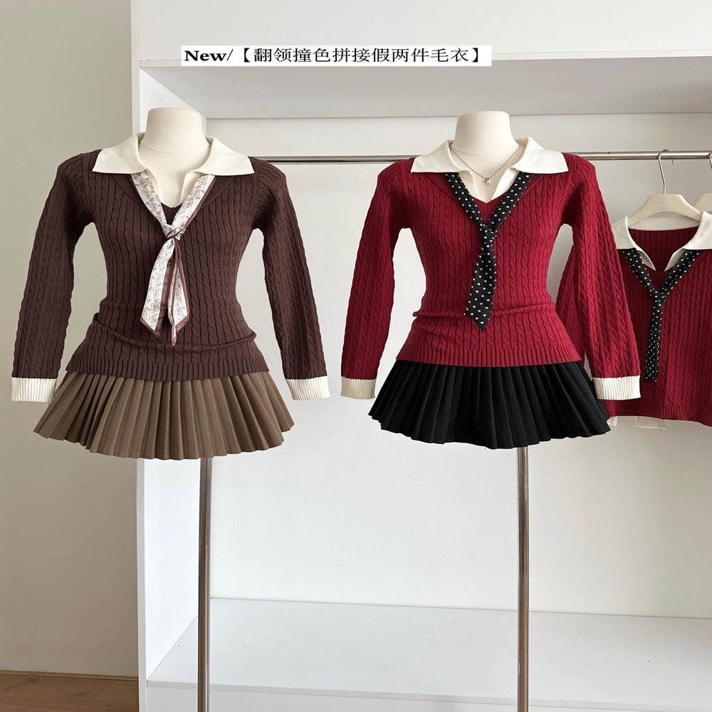 • 제품명: 폴로카라 배색 레이어드 스타일 케이블 니트