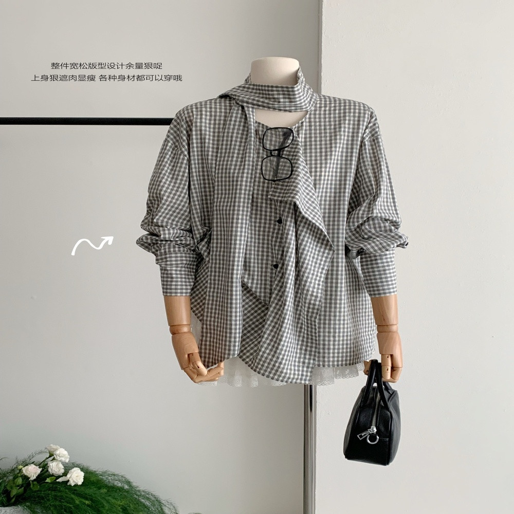 • 제품명: 천체크 리본 타이 루즈핏 언밸런스 셔츠