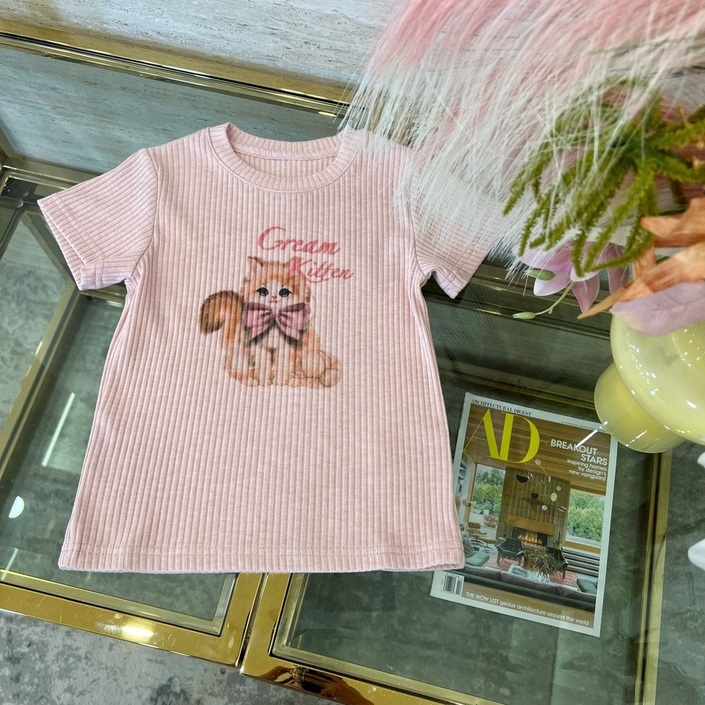 • 제품명: 고양이 프린트 골지 반팔 티셔츠