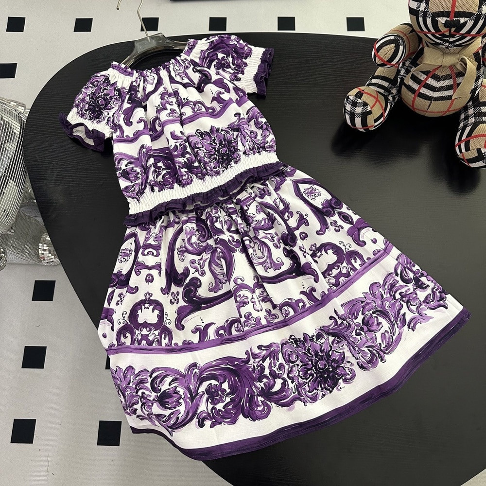 제품명: 키즈 프린트 반소매 스커트 세트