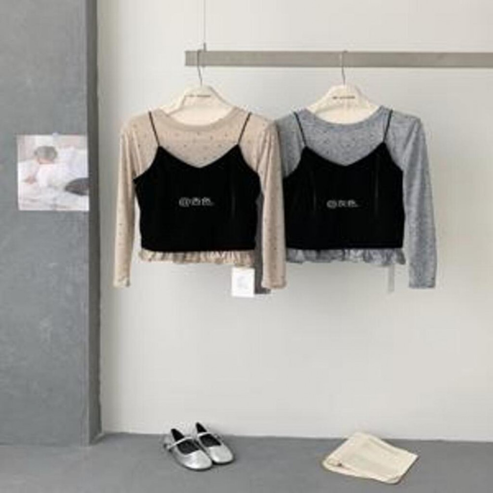 • 제품명: 벨벳 슬리브리스 & 물결 포인트 도트 티셔츠 세트