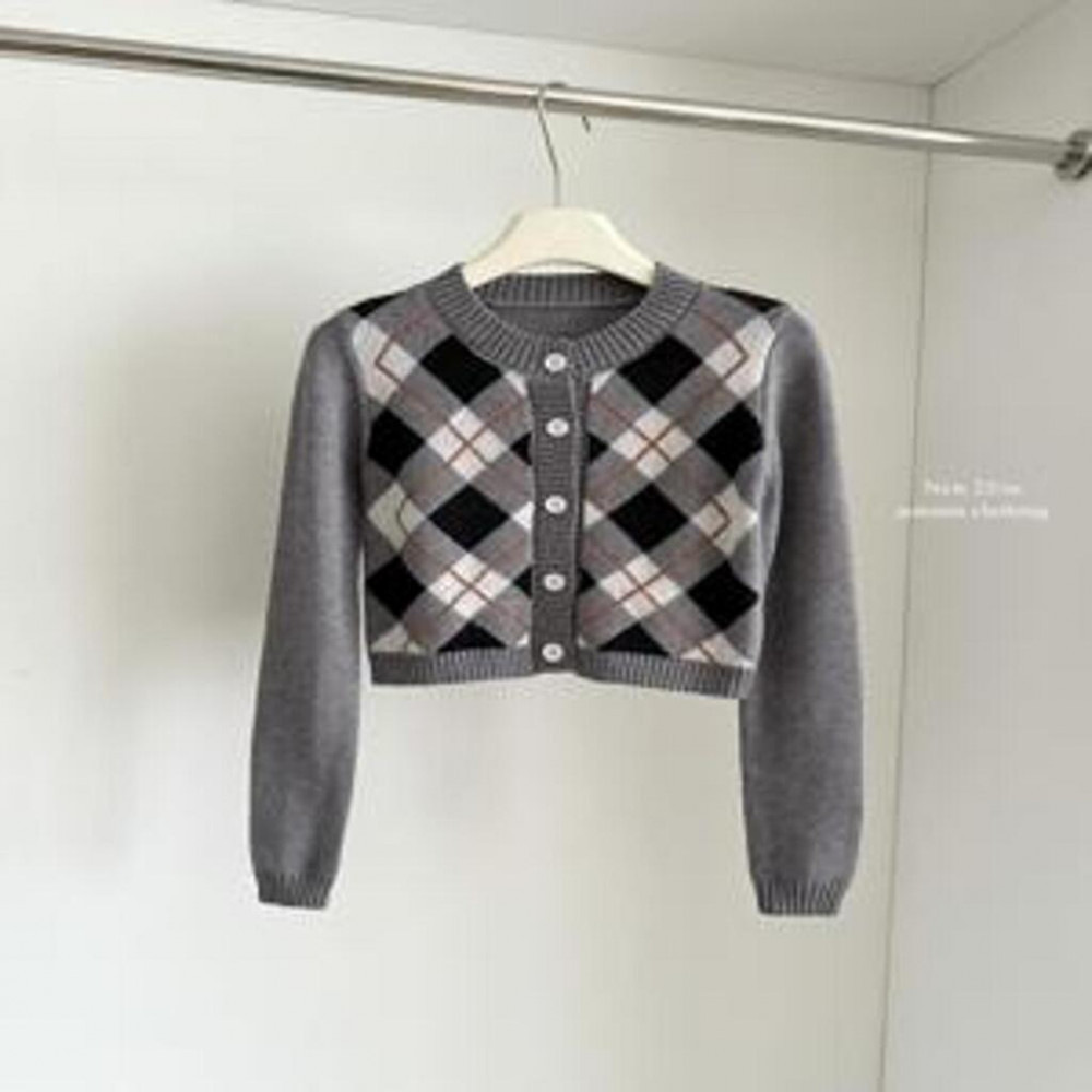 • 제품명: 아가일 체크 라운드넥 니트 가디건