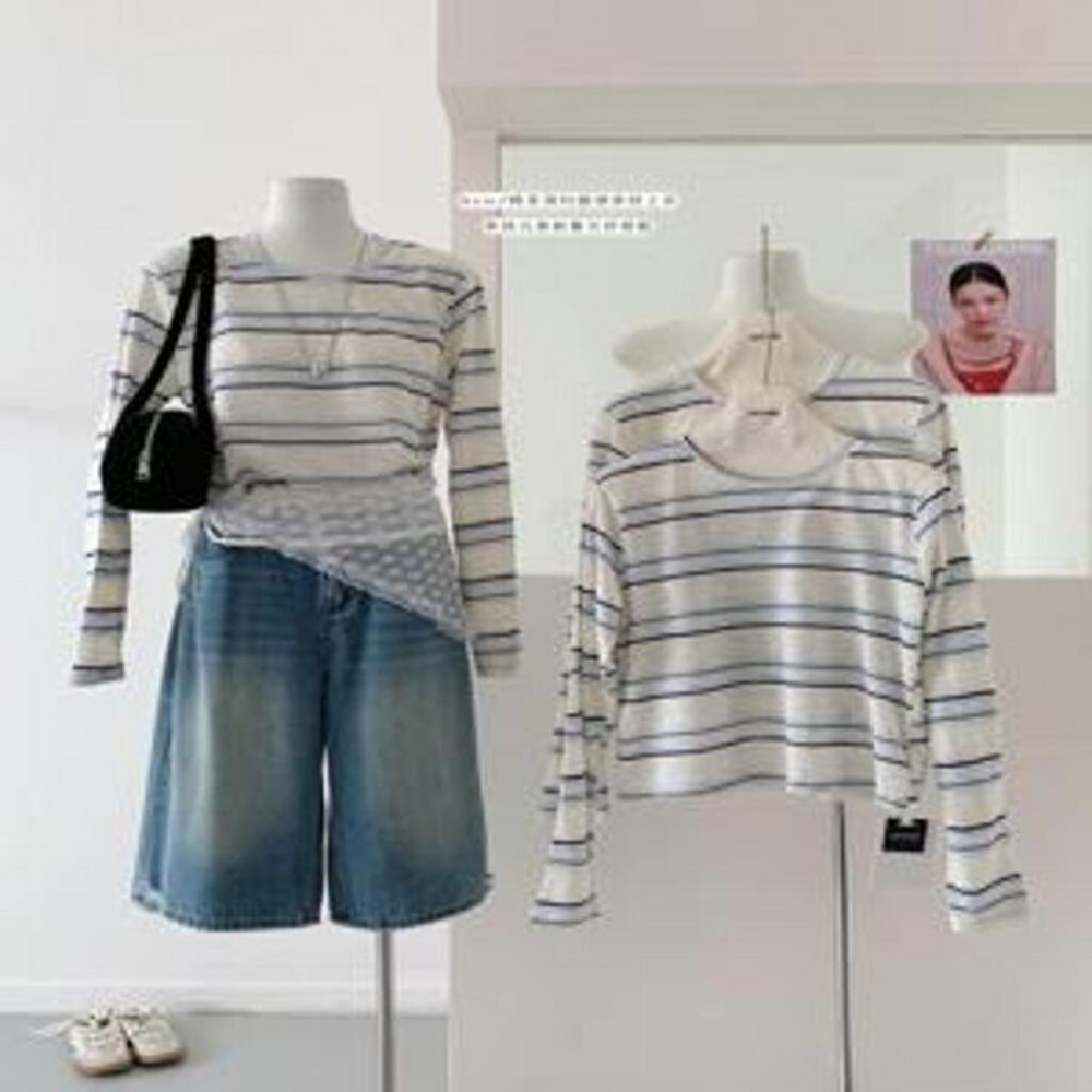 • 제품명: 스트라이프 라운드넥 니트 티셔츠