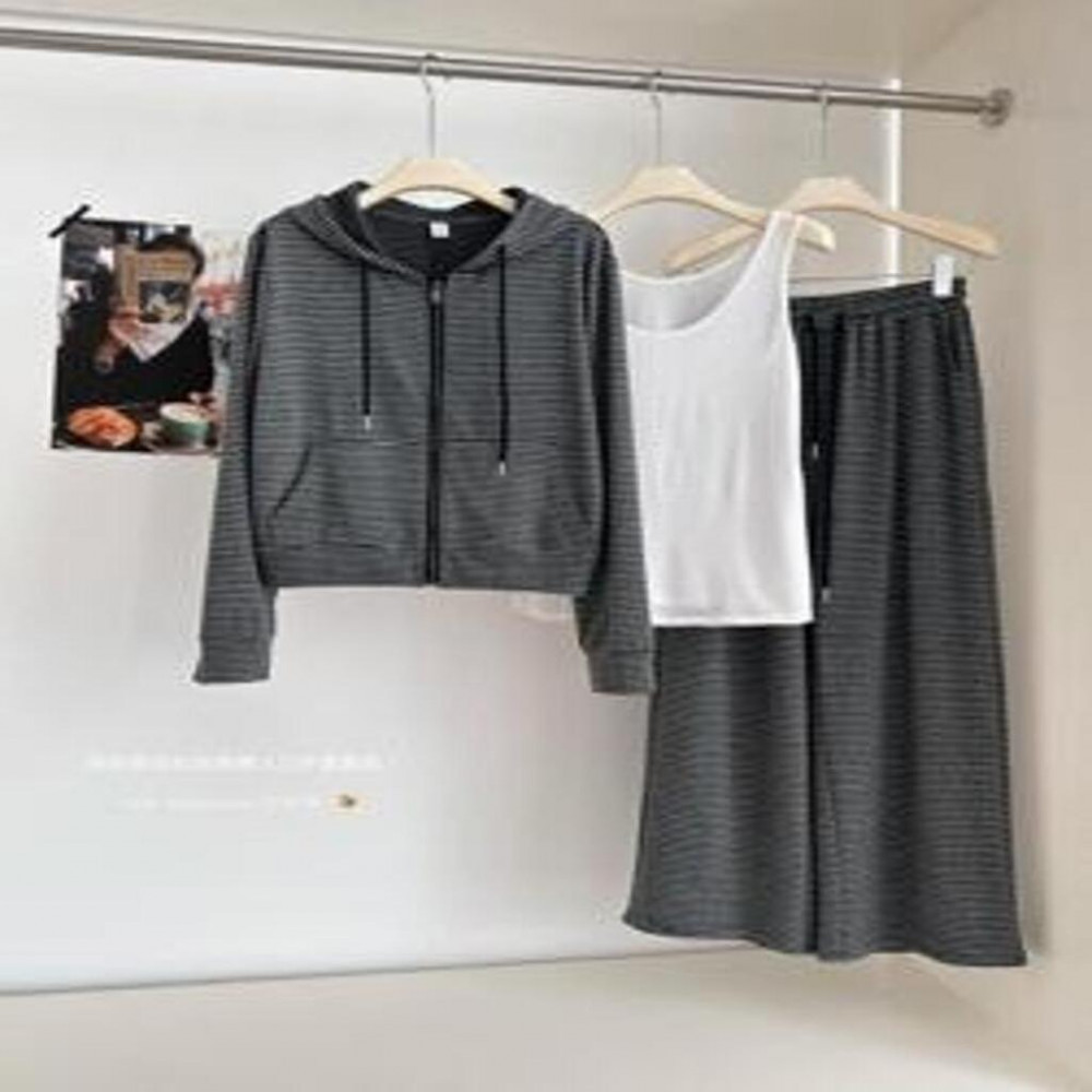 • 후드 집업, 민소매 탑, 팬츠 구성의 3피스 세트