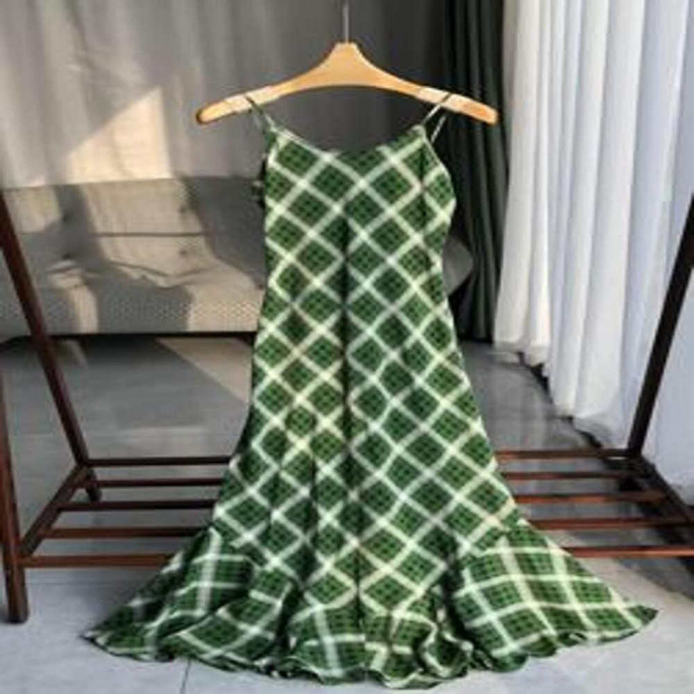 • 제품명: 그린 체크 실크 머메이드 슬립 원피스