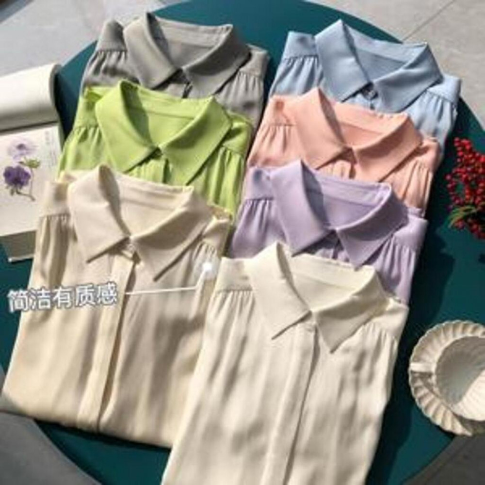 • 제품명: 미니멀 핀턱 진주사 샤르무즈 실크 셔츠