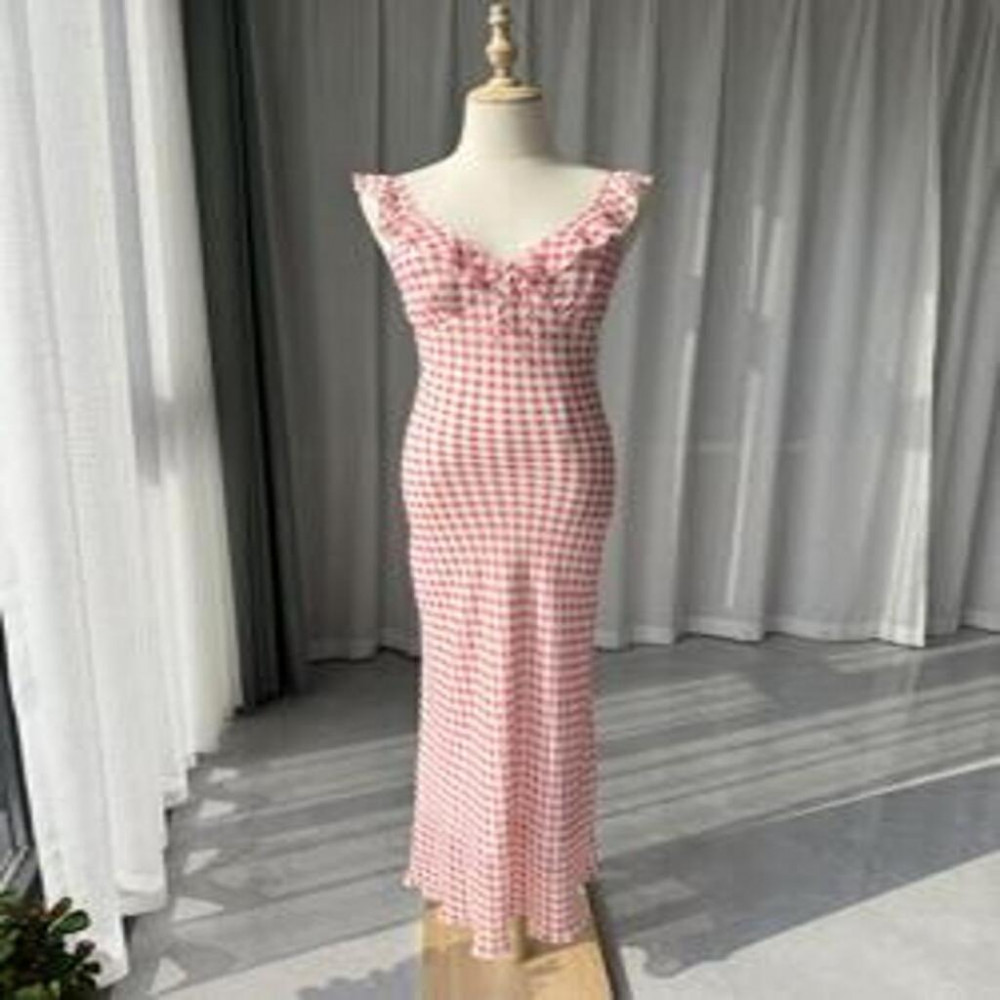 • 제품명: 딸기 핑크 체크 실크 원피스
