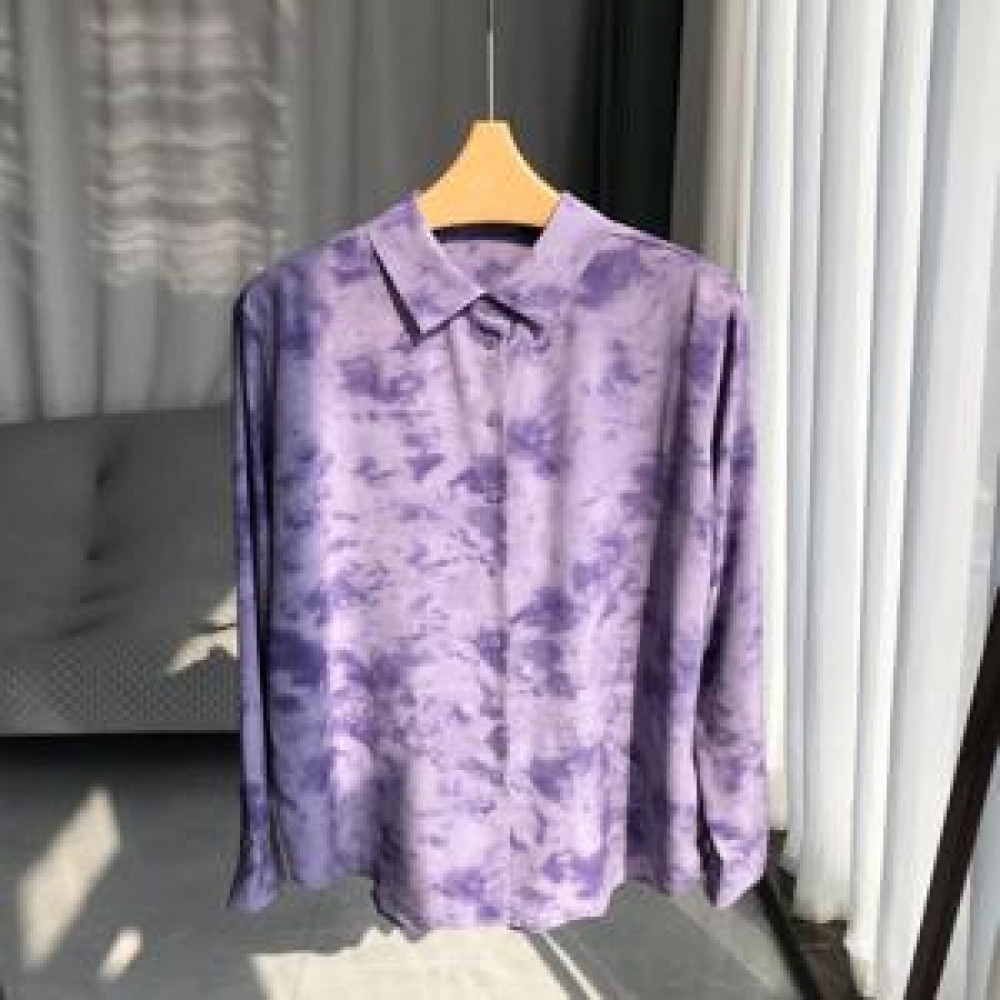 - 연보라 그라데이션 패턴이 인상적인 실크 셔츠