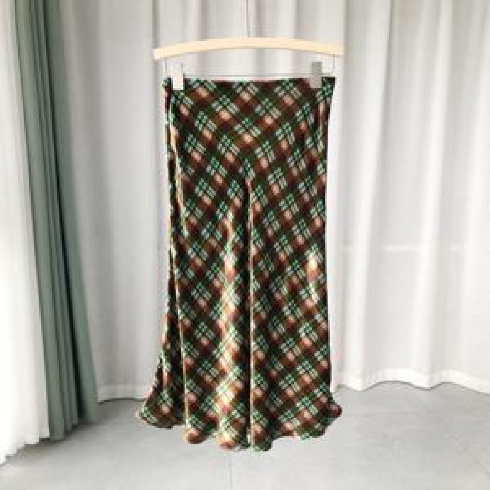 - 제품명: 그린 브라운 체크 실크 벨벳 스커트
