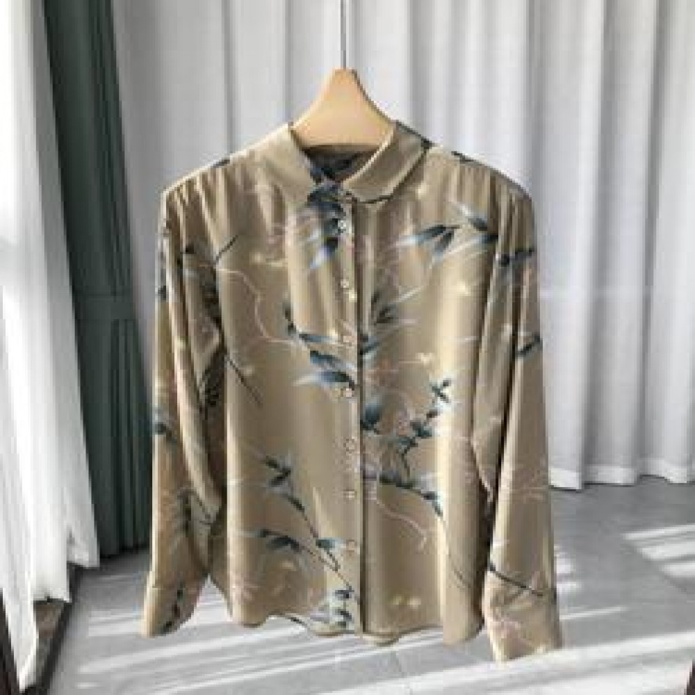 - 제품명: 카키 대나무잎 진주 실크 셔츠