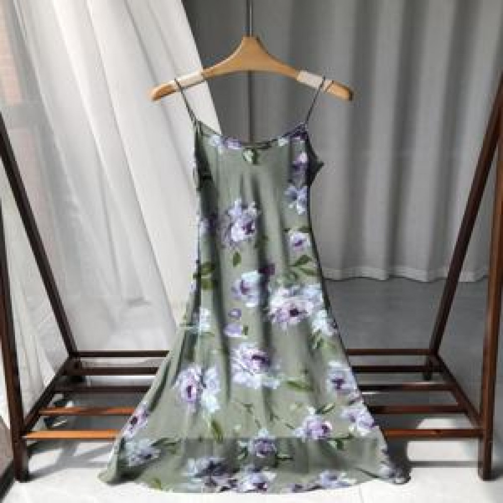 - 제품명: 퍼플 작약 프린트 실크 슬립 드레스